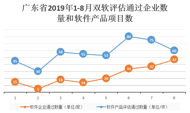 截止2019年8月,廣東省參與軟件企業評估通過的企業已有190家,軟件產品評估通過已有456項,比2018年同期分別增長了17.28%和4.58%