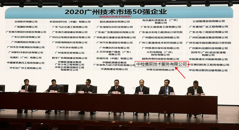 2021年3月2日,廣州市政府新聞辦舉行新聞發布會,邀請相關政府部門、高校、科研機構和企業代表分享科技成果轉化經驗,并發布“2020廣州技術市場年度榜單”。中檢賽辰技術服務有限公司(簡稱:賽辰)位列“2020廣州技術市場50強企業”榜單,賽辰在推動科技成果轉移轉化的能力深受認可。